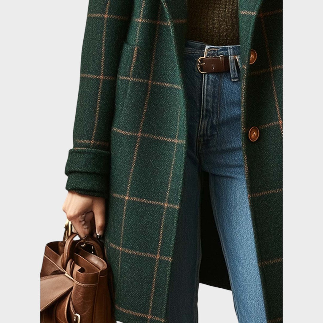 Le manteau Léandra associe une sophistication classique à une touche contemporaine grâce à son imprimé à carreaux vert profond. Sa coupe structurée et ses boutons élégants sur le devant créent une silhouette distinctive qui rehausse instantanément n’importe quelle tenue. Confectionné dans un tissu chaud et doux, il est idéal pour les journées froides, tandis que ses poches latérales ajoutent une note pratique sans compromettre l’élégance. Une pièce parfaite pour transformer des looks simples en ensembles raffinés et pleins de charme.