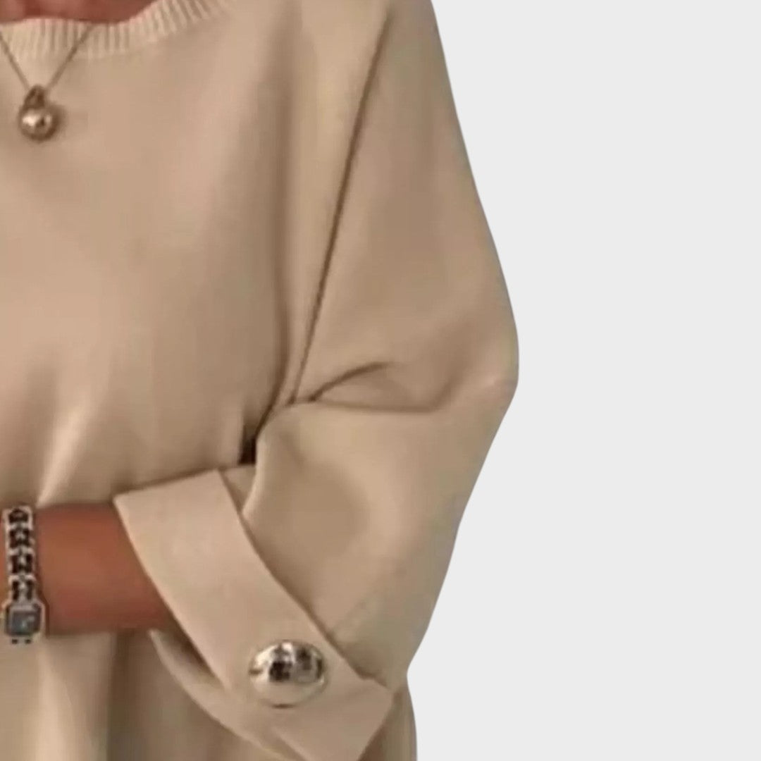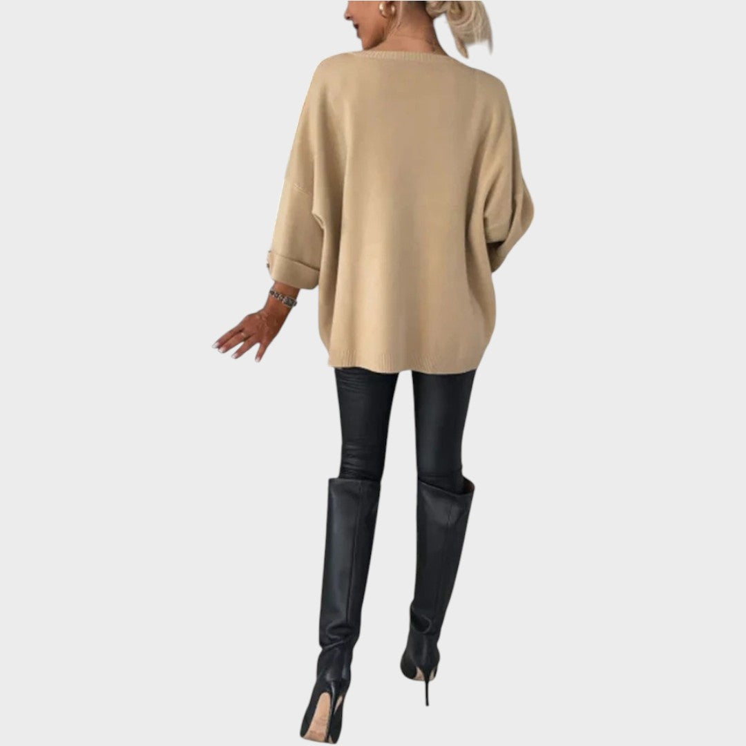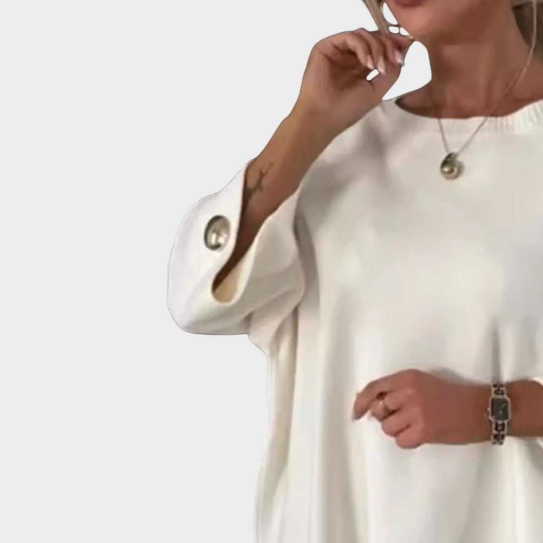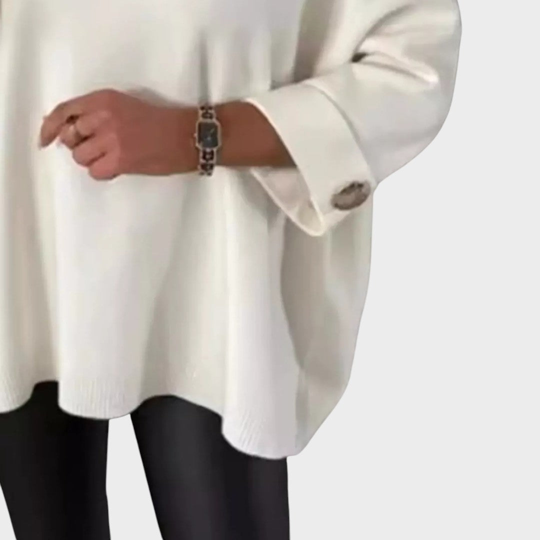 Le pull Adélie incarne l’élégance simple alliée au confort moderne. Avec sa coupe ample et fluide, il séduit par son design minimaliste rehaussé de détails raffinés au niveau des poignets, ornés de boutons décoratifs qui apportent une touche subtilement sophistiquée.