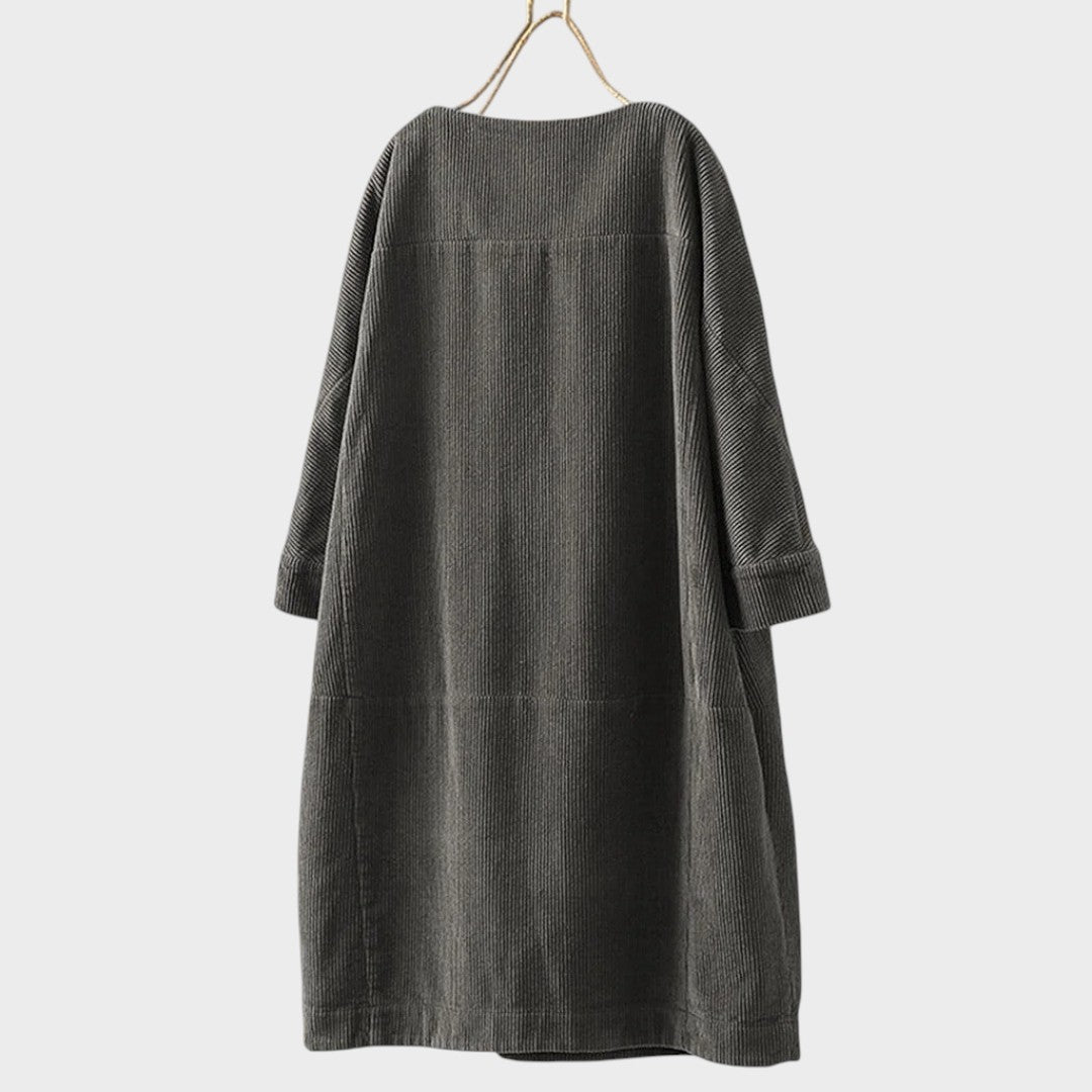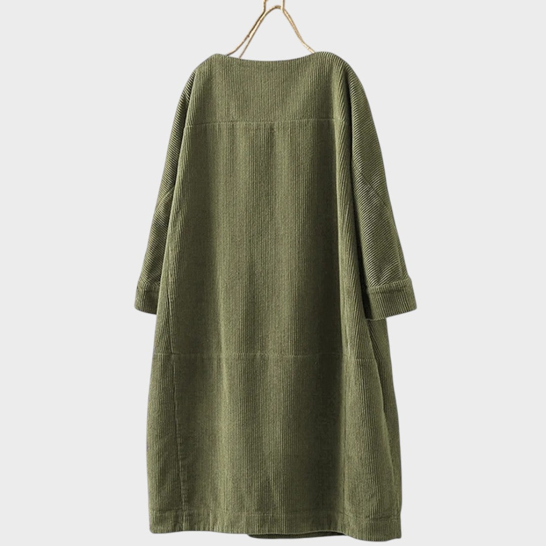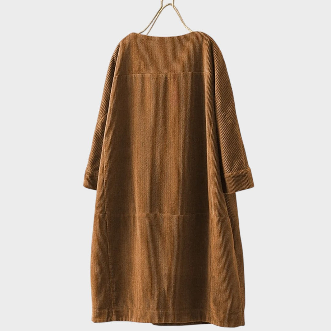 La robe en velours côtelé Maëlle est pensée pour le quotidien, en alliant confort naturel et charme décontracté. Confectionnée en velours côtelé respirant et dotée d’une silhouette légèrement structurée, elle offre une coupe agréable à porter en toute saison, aussi bien pour sortir que pour se détendre à la maison.
