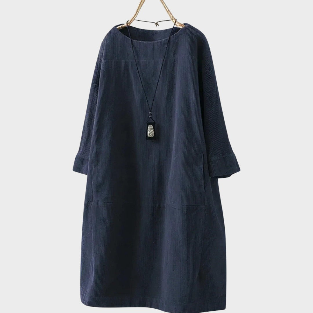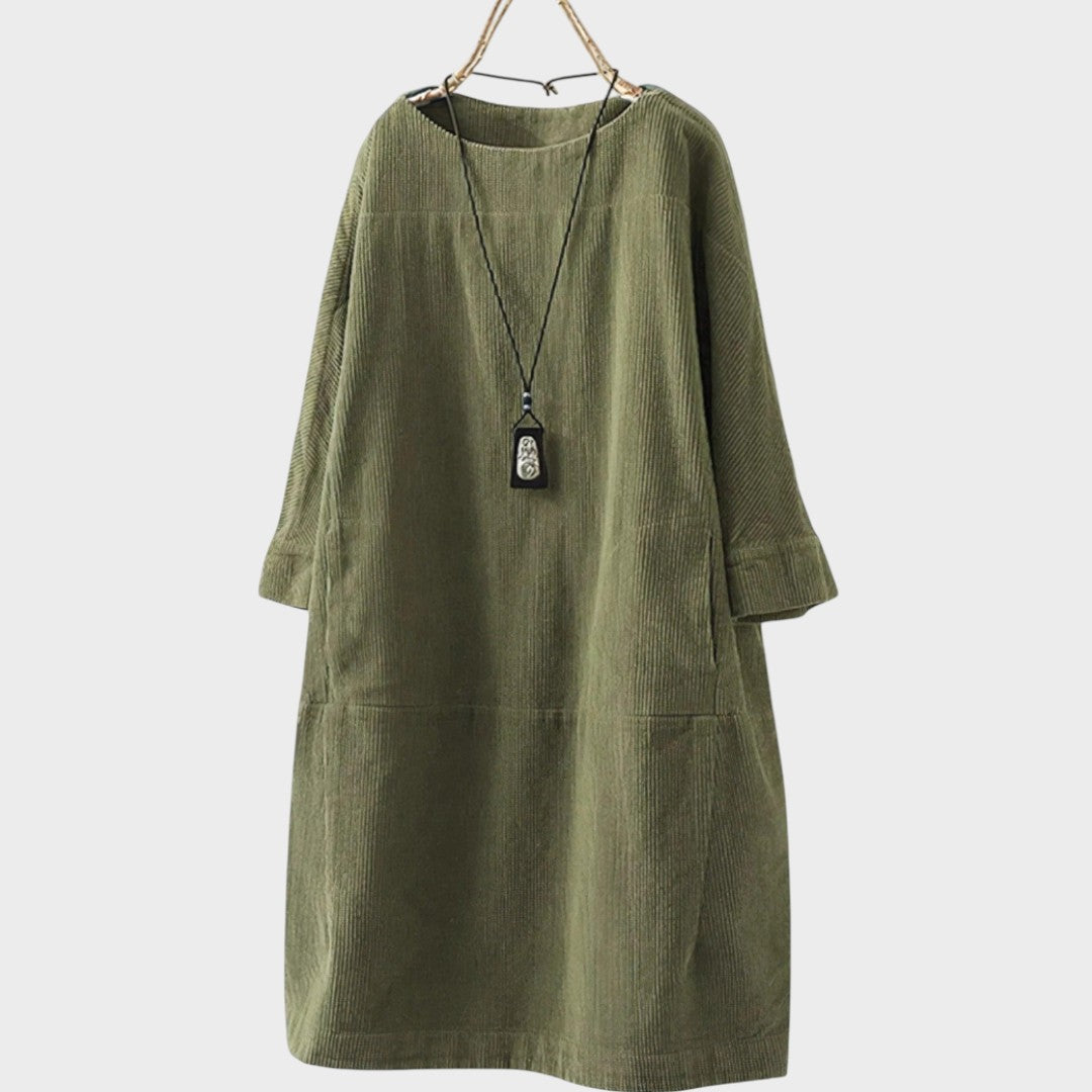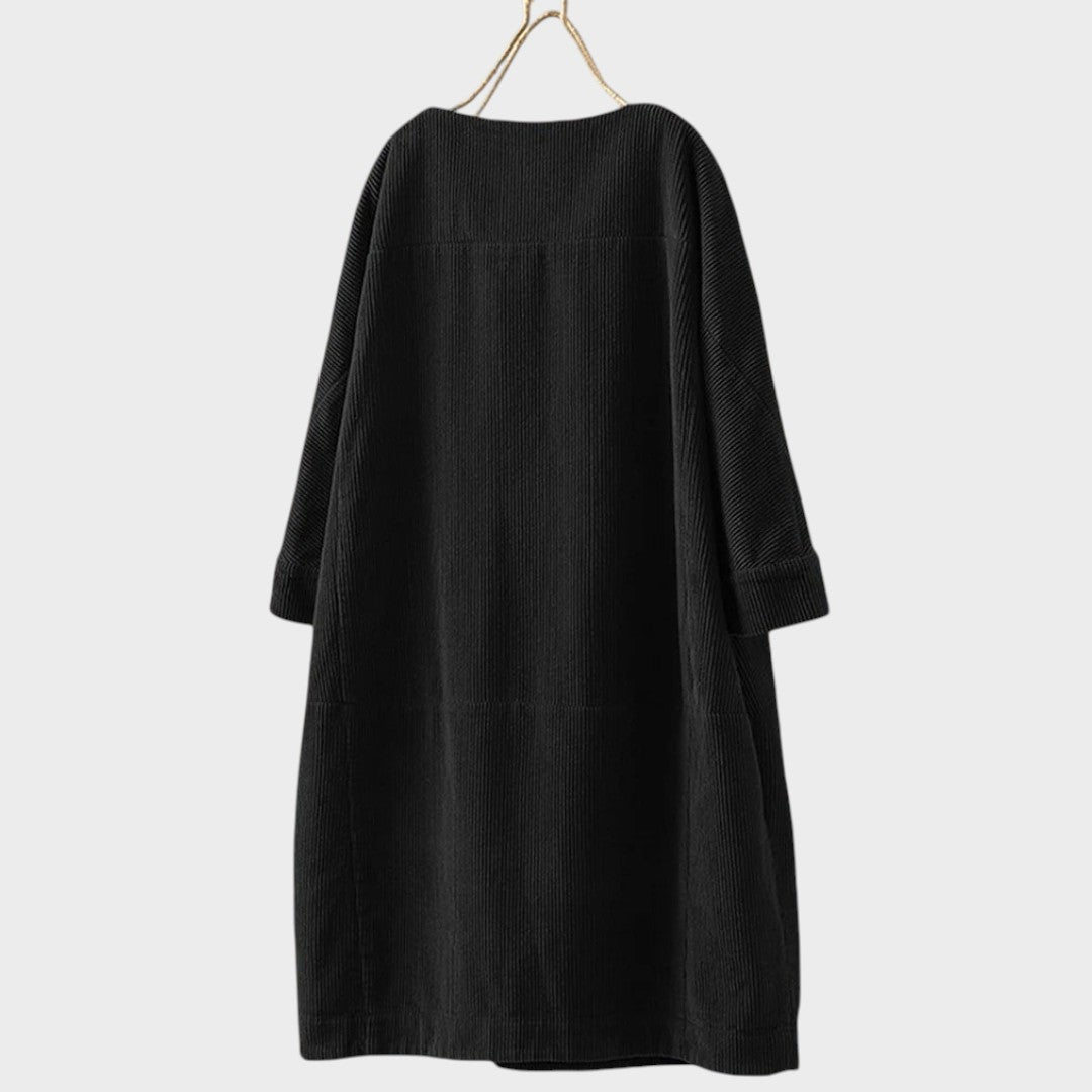 La robe en velours côtelé Maëlle est pensée pour le quotidien, en alliant confort naturel et charme décontracté. Confectionnée en velours côtelé respirant et dotée d’une silhouette légèrement structurée, elle offre une coupe agréable à porter en toute saison, aussi bien pour sortir que pour se détendre à la maison.